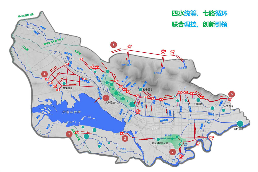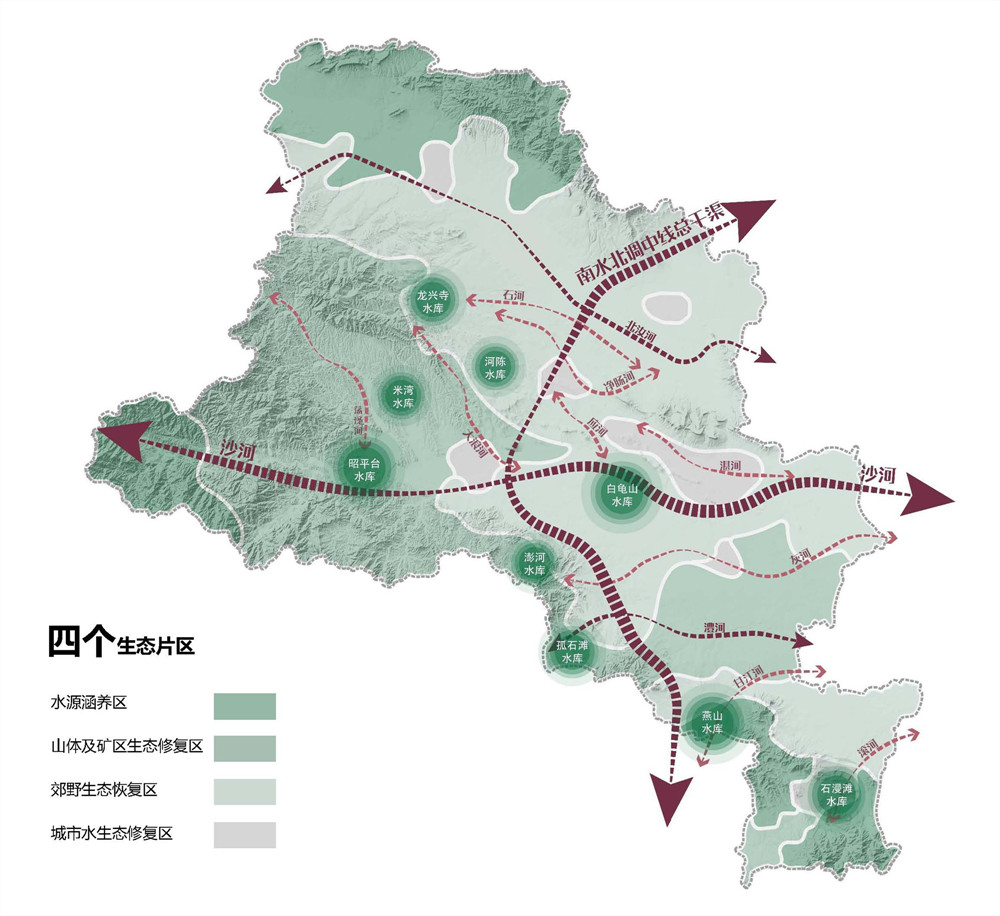 《平頂山市全域循環(huán)生態(tài)水系規(guī)劃》是河南省第一個采用公開競標(biāo),確定中標(biāo)單位的地區(qū)性水利綜合規(guī)劃項目,是引導(dǎo)平頂山市未來水利工作的頂層規(guī)劃,規(guī)劃提出了“四維連通,立體循環(huán)”的生態(tài)水網(wǎng)概念,確定了“一縱四橫九脈連通,三源五湖一網(wǎng)循環(huán)”水系格局。