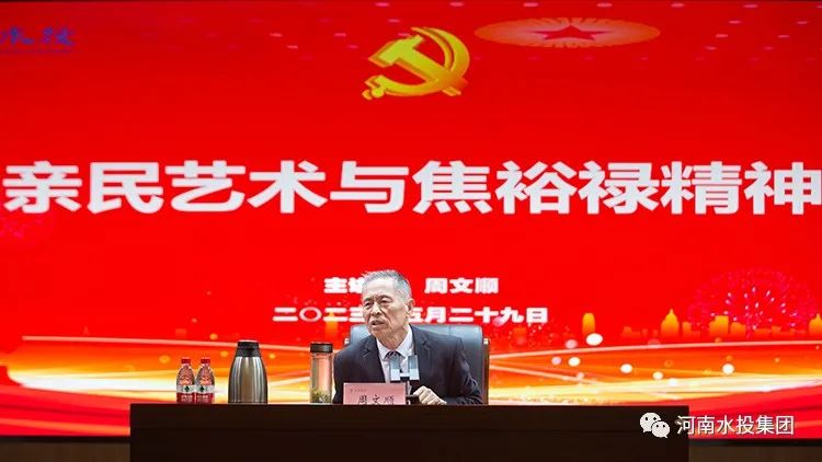 為全面深入推進主題教育走深走實,5月29日上午,河南水投集團舉辦黨委理論中心組集體學習(擴大)專題輔導報告會,特邀中共黨史專家、臺海及國際問題專家、鄭州大學港臺人文研究中心主任周文順教授作專題輔導報告。集團黨委書記、董事長楊繼成主持報告會。省委第三十二巡回指導組組長、省政協人口資源環境委員會副主任張興遼同志,指導組成員、省政府國資委宣傳教育處干部戴曉彬同志到會指導。