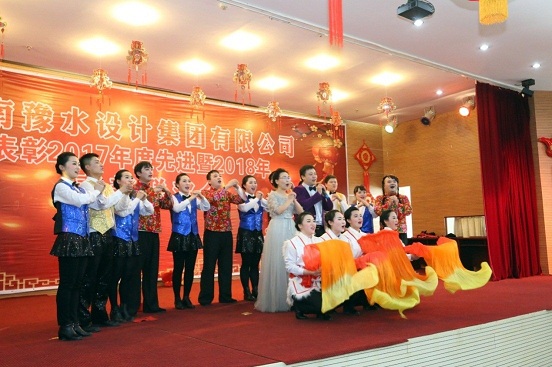 金雞起舞辭舊歲,瑞犬歡騰迎新春。2018年2月11日下午,河南豫水設計集團有限公司表彰2017年度先進暨2018年春節聯歡會在公司三樓大會議室舉行。公司董事會、監事會、經營班子成員,受表彰的先進集體及個人,在鄭員工等350余人歡聚一堂,共迎新春佳節的到來。