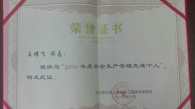 2017年3月1日上午,河北省引黃入冀補淀工程管理局對2016年度安全生產(chǎn)目標管理的先進單位和個人予以表彰,河南省水利勘測設計研究有限公司引黃入冀補淀工程(河南段)設計代表處被評為先進單位,設代處成員王耀飛被評為先進個人,設計二院副院長馮濤,設代處處長王偉,設代處成員張征浩、梁榮慧參會。