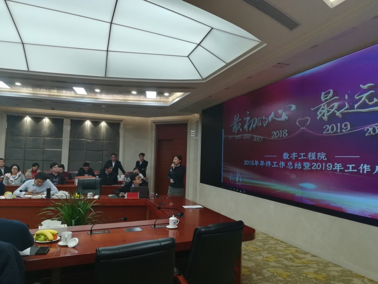 2019年2月12日,數字工程院2018年年終總結會暨2019年工作啟動會在公司二樓會議室召開,公司副總經理賈少燕和趙廷華、技術質量部部長皇甫偉、企業發展規劃部部長賈西斌、人力資源部部長劉國龍、市場經營部部長李勝兵參加了會議。