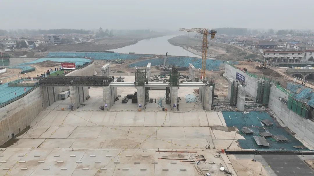 賈魯河綜合治理工程扶溝縣北關(guān)閘建設(shè)現(xiàn)場(chǎng)(盧漢 攝)
